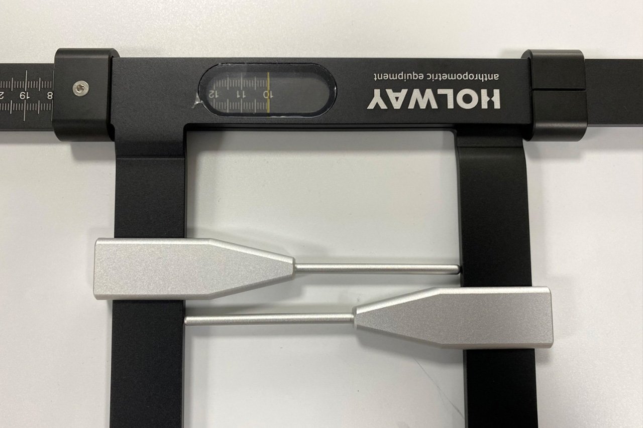 This large diameter gauge is used oo evaluate biacromial, bi-iliocrestid, antero-posterior and transverse thorax, bi-trochanteric diameters. These are used to evaluate the state of maturation (androgenic index), in addition to estimating the weight of the skeleton (Kerr-Ross equation).